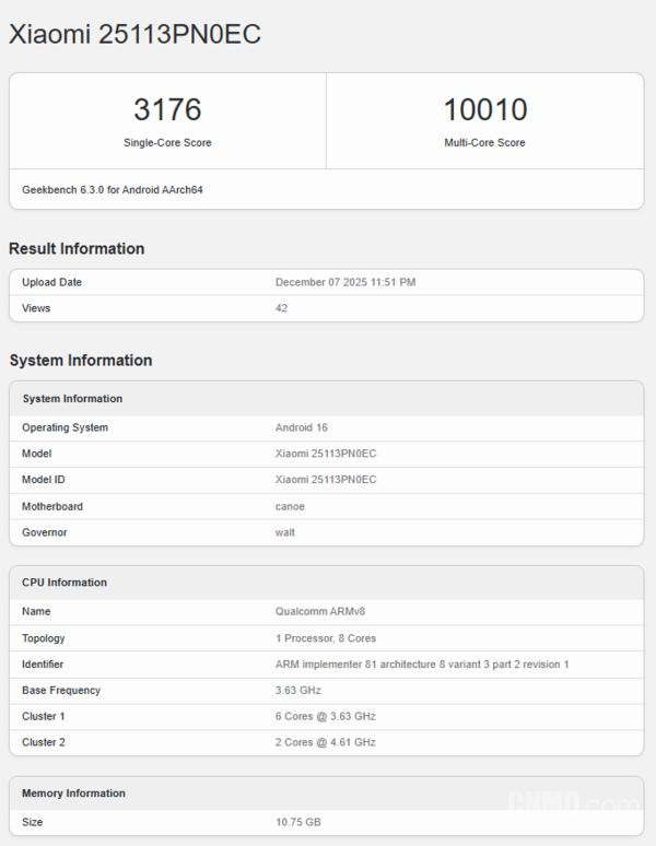 近日,代号 “25113PN0EC” 的神秘新机跑分数据遭到曝光,单核 3176、多核 10010 的逆天成绩直接碾压当前旗舰圈!这款被业内普遍认为是小米 17 全球版本的机型股票配资指南官方,不仅搭载了高通下一代旗舰芯骁龙 8 Elite Gen 5,更首发了 Android 16 系统,配合 12GB 大内存,堪称 2026 年最值得期待的 “性能猛兽”!但小米官方至今沉默,是真憋大招还是烟雾弹?海外用户到底要不要等?